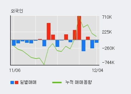 지난 한달을 기준으로 보면 기관이 8.5만주를 순매수했고, 개인들도 159.1만주를 순매수했다. 반면 그동안 외국인은 26.5만주를 순매도했다. 같은 기간 이 종목의 거래비중은 외국인과 개인이 각각 21.2%, 77.7%로 비중이 높다.