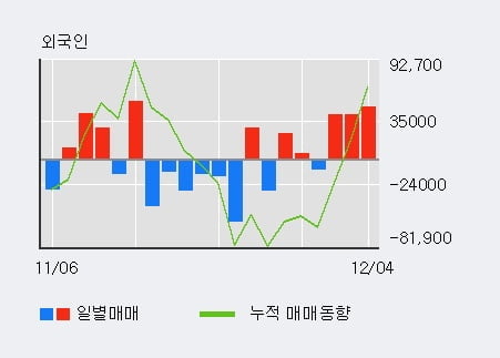 지난 한달을 기준으로 보면 기관이 1,667주를 순매수했고, 개인들도 22.3만주를 순매수했다. 반면 그동안 외국인은 8.3만주를 순매도했다. 같은 기간 이 종목의 거래비중은 외국인과 개인이 각각 23.9%, 73.0%로 비중이 높다.