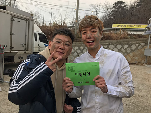 사진 속 김기남과 정경호는 조난을 당해 지저분해진 얼굴로 촬영에 임하고 있지만 절친답게 사이좋게 웃고 있는 모습으로 실제로는 한 살 형인 김기남의 속사정을 알고 보면 더욱 재미있는 사진이다.
