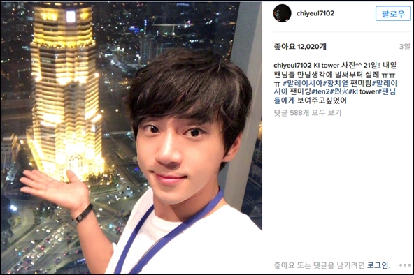 가수 황치열은 최근 인스타그램에 "Kl tower 사진^^ 팬분들 만날 생각에 벌써부터 설레네. #말레이시아#황치열 팬미팅#말레이시아 팬미팅"이라는 글과 함께 사진을 게재했다.
