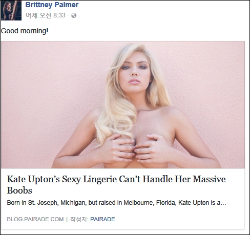 | ▲팔머 화보 시선집중. (사진=브리트니 팔머 페이스북) |