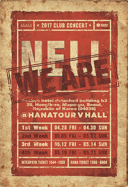 2017 넬 클럽콘서트 `WE ARE`는 홀이나 경기장 급이 아닌 2007년 이후 10년 만에 처음으로 열리는 라이브 클럽공연으로, 밴드 넬(NELL)의 시작이었던 클럽으로 돌아가 라이브 클럽에서만 느낄 수 있는 생동감 넘치는 사운드를 선사할 예정이다.