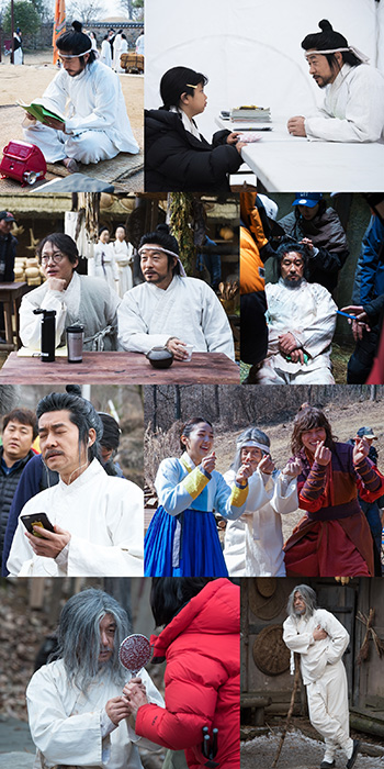 그러다가도 한참 어린 후배 배우들과의 작업에서는 허물없이 어울리는가 하면 윤균상(길동 역), 채수빈(가령 역)과 손가락으로 하트를 그리는 모습은 개구지기까지 하다. 능상 척결의 칼날을 맞고 무너진 아모개를 표현하기 위해 분장한 자신의 모습이 생경한지 연신 거울을 보거나, 소품용 지팡이가 이내 익숙해진 듯 몸을 기대는 모습도 재밌다.