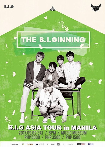최근 비아이지는 `B.I.G ASIA TOUR IN SEOUL-The B.I.Ginning`을 마쳤다. 이어 아시아투어 프로모션의 일환으로 필리핀을 방문, 공연과 함께 매체 인터뷰를 진행하며 해외에서의 뜨거운 반응을 입증한 바 있다.