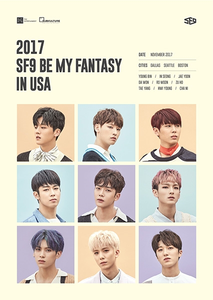 SF9은 오는 11월 15일 댈러스를 시작으로 17일 시애틀, 19일 보스턴 등 미국 3개 도시에서 ‘2017 SF9 BE MY FANTASY IN USA’를 진행한다. SF9은 미주 팬미팅에서 다양한 게임과 Q&A 등을 통해 현지 팬들과 더욱 가까이 소통하는 알찬 시간을 가질 예정이다.
