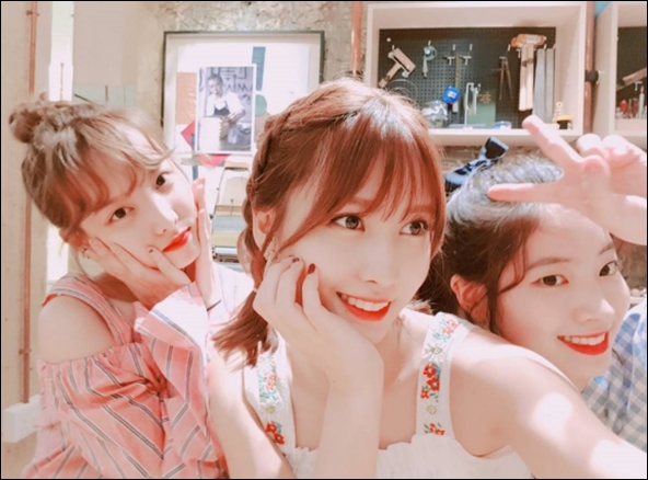 공개한 사진 속, 세 사람이 앙증맞은 모습으로 포즈를 취하고 있다. 투명한 피부와 싱그러운 미소로 팬들의 눈길을 사로잡았다.