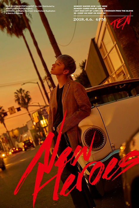 오는 6일 오후 6시 멜론, 지니, 네이버뮤직 등 각종 음악 사이트에서 공개되는 신곡 ‘New Heroes’는 텐의 한층 성숙해진 보컬과 일렉트로닉 사운드가 어우러진 퓨처베이스 EDM 팝 곡으로, 이 시대의 새로운 히어로가 되겠다는 강한 의지를 영어 가사로 표현해 글로벌 음악 팬들의 뜨거운 호응을 얻을 전망이다.