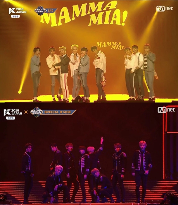 지난 19일 오후 방송된 엠넷 ‘KCON 2018 JAPAN’에서는 SF9의 ‘맘마미아(MAMMA MIA)’ 무대가 전파를 탔다.
