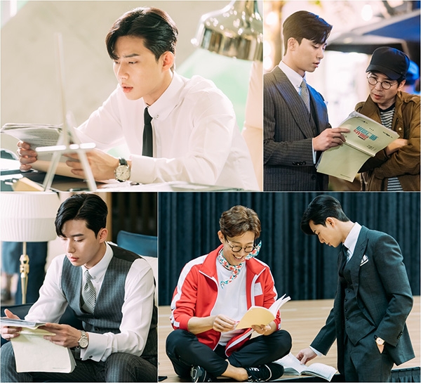 공개된 스틸 속 박서준은 대본 삼매경에 빠져 있다. 또한 박준화 감독에게 조언을 구하는가 하면 자유롭게 아이디어를 주고 받는 모습이 훈훈함을 자아낸다. 더불어 자칭 이영준의 연애 코치를 자처하는 박유식 역의 강기영과도 틈틈이 대사를 맞춰보는 모습이 포착됐다. 극중 두 사람의 ‘코믹 브로맨스’가 시청자 사이에서도 큰 화제를 불러 일으키는 중.