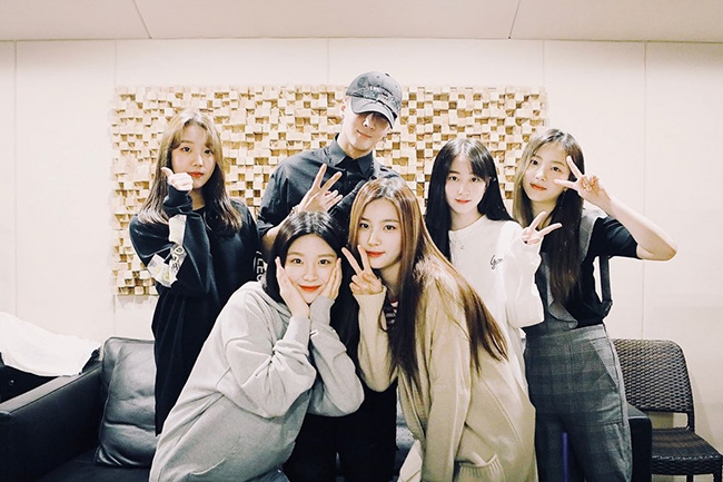 화장기 없이 수수한 얼굴임에도 청순한 미모를 자랑하고 있는 엘리스 멤버들과 카리스마 넘치는 브이 포즈를 취하며 미소 짓고 있는 라비의 모습은 훈훈한 분위기를 자아내며 보는 이들의 시선을 사로잡고 있다.