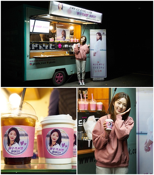 자체 최고 시청률을 연일 경신하며 뒷심을 발휘하고 있는 SBS 월화드라마 ‘여우각시별’의 여주인공 채수빈이 배우 김하늘의 통 큰 지원을 받고 함박웃음을 지었다. 지난 7일 오후 김하늘이 일산 탄현 세트장에서 진행된 ‘여우각시별’ 촬영 현장에 커피차를 선물하며 응원을 전한 것.
