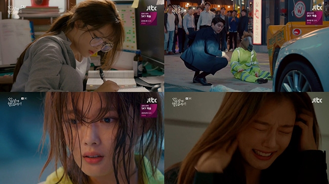 이때 김유정은 꾸미지 않은 꼬질한 모습의 취준생 ‘길오솔’이 되어 웹툰 원작과 외적으로 완벽한 싱크로율을 선보이는가 하면, 믿고 보는 탄탄한 연기로 원작 캐릭터를 더욱 입체적으로 그려냈다. 연이은 취업 낙방으로 인한 ‘좌절 모드’부터 짝사랑에 실패한 후 ‘폭풍 눈물’, 선결과 거듭되는 악연에 귀여운 비명을 지르기까지 첫 회부터 꽉 채운 ‘종합연기세트’를 선보인 것.