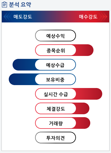 외국인, 기관 수급을 보면 외국인은 매수전환하고 있고, 기관은 3일 연속 매도하였다. 알파고는 외국인, 기관의 추가 매도 가능성을 60%로 예상하고 있다.