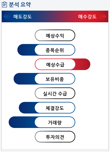외국인, 기관 수급을 보면 외국인은 4일 연속매수하고 있고, 기관은 매수전환하였다. 알파고는 외국인, 기관의 추가 매수 가능성을 2%로 예상하고 있다.
