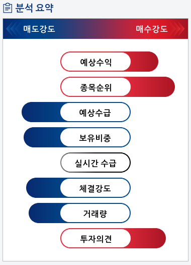 외국인, 기관 수급을 보면 외국인은 4일 연속매수하고 있고, 기관은 4일 연속 매도하였다. 알파고는 외국인, 기관의 추가 매도 가능성을 70%로 예상하고 있다.