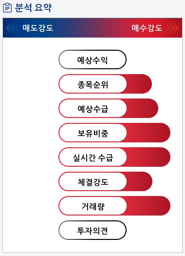 외국인, 기관 수급을 보면 외국인은 매도전환하고 있고, 기관은 9일 연속 매수하였다. 알파고는 외국인, 기관의 추가 매수 가능성을 30%로 예상하고 있다.