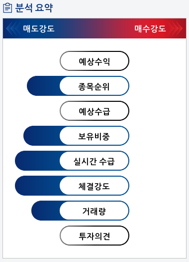 외국인, 기관 수급을 보면 외국인은 2일 연속 매도하고 있고, 기관은 3일 연속 매수하였다. 알파고는 외국인, 기관의 추가 매도 가능성을 0%로 예상하고 있다.