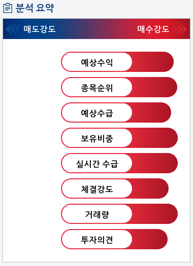 외국인, 기관 수급을 보면 외국인은 2일 연속매수하고 있고, 기관은 2일 연속 매수하였다. 알파고는 외국인, 기관의 추가 매수 가능성을 68%로 예상하고 있다.
