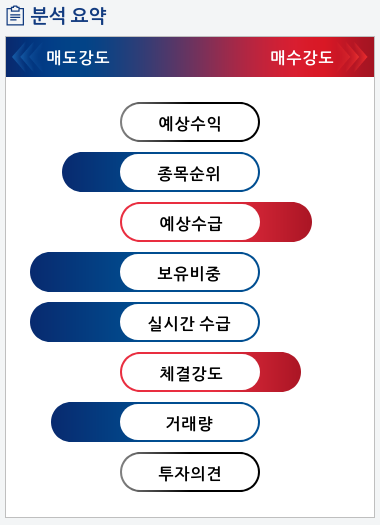 외국인, 기관 수급을 보면 외국인은 3일 연속매수하고 있고, 기관은 매도전환하였다. 알파고는 외국인, 기관의 추가 매수 가능성을 16%로 예상하고 있다.