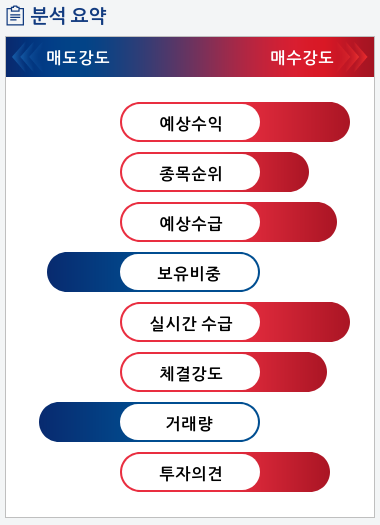 외국인, 기관 수급을 보면 외국인은 매수전환하고 있고, 기관은 3일 연속 매도하였다. 알파고는 외국인, 기관의 추가 매수 가능성을 36%로 예상하고 있다.