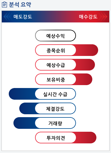 (위의 종목알파고 분석은 기업의 가치, 차트, 재무, 외인/기관 수급 등 과거 데이터를 분석하여 향후 주가의 방향을 예상 하였으며, 높은 수익률을 보장하지는 않습니다. 위의 자료는 투자 참고용으로 제시해 드리는 것이며, `종목알파고 유망종목 Top5`는 주식창앱에서 확인하실 수 있습니다.)
