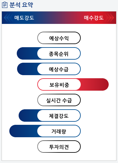 (위의 종목알파고 분석은 기업의 가치, 차트, 재무, 외인/기관 수급 등 과거 데이터를 분석하여 향후 주가의 방향을 예상 하였으며, 높은 수익률을 보장하지는 않습니다. 위의 자료는 투자 참고용으로 제시해 드리는 것이며, `종목알파고 유망종목 Top5`는 주식창앱에서 확인하실 수 있습니다.)