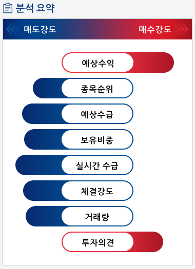 (위의 종목알파고 분석은 기업의 가치, 차트, 재무, 외인/기관 수급 등 과거 데이터를 분석하여 향후 주가의 방향을 예상 하였으며, 높은 수익률을 보장하지는 않습니다. 위의 자료는 투자 참고용으로 제시해 드리는 것이며, `종목알파고 유망종목 Top5`는 주식창앱에서 확인하실 수 있습니다.)