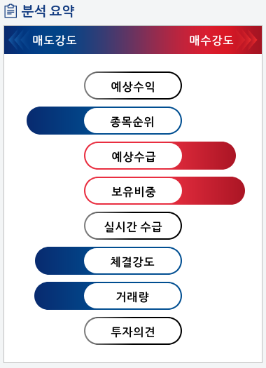 (위의 종목알파고 분석은 기업의 가치, 차트, 재무, 외인/기관 수급 등 과거 데이터를 분석하여 향후 주가의 방향을 예상 하였으며, 높은 수익률을 보장하지는 않습니다. 위의 자료는 투자 참고용으로 제시해 드리는 것이며, `종목알파고 유망종목 Top5`는 주식창앱에서 확인하실 수 있습니다.)