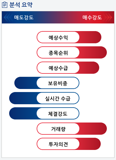 외국인, 기관 수급을 보면 외국인은 4일 연속 매도하고 있고, 기관은 12일 연속 매수하였다. 알파고는 외국인, 기관의 추가 매수 가능성을 48%로 예상하고 있다.