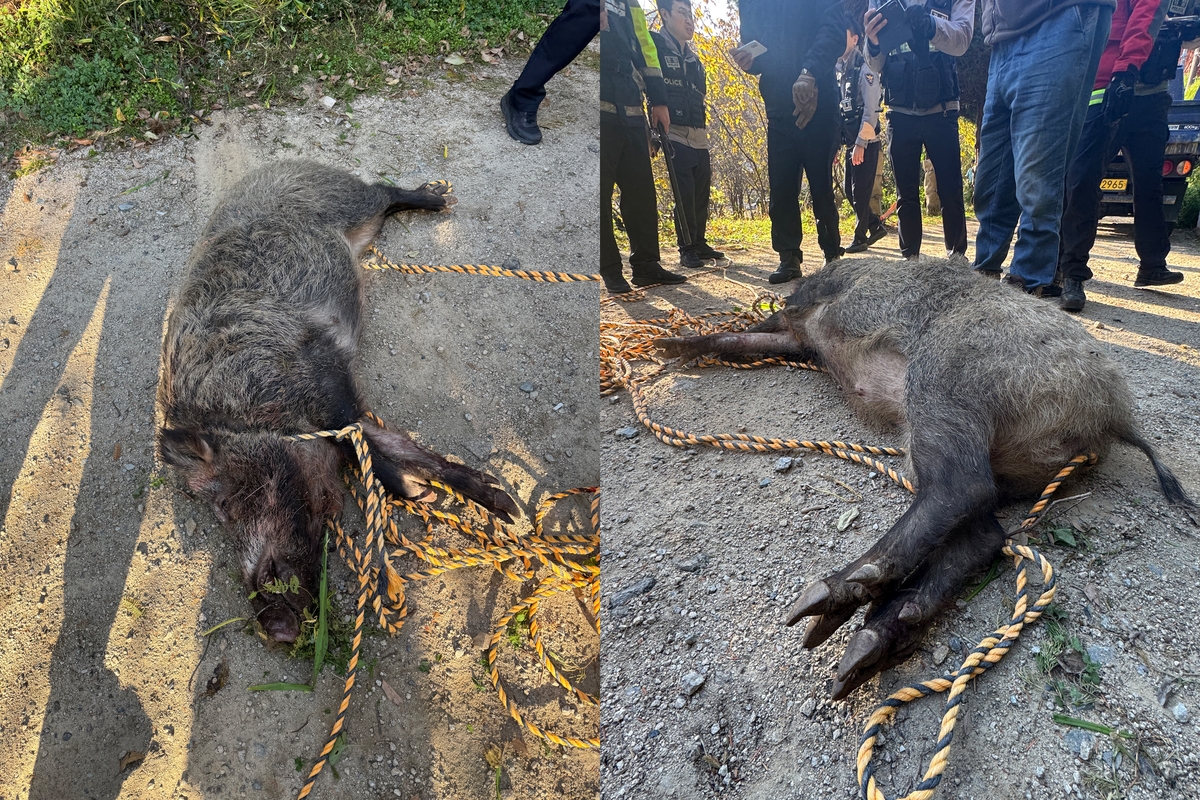 멧돼지는 오후 3시 4분께 경찰과 엽사 등에 의해 포획됐다.