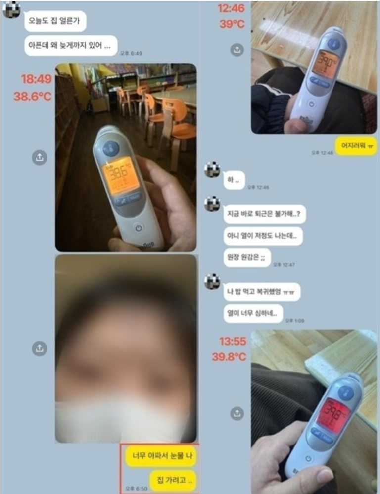 A씨는 1월 27일 B형 독감 판정을 받은 이후에도 3일간 출근했으며, 이후 증상이 악화돼 같은 달 30일 오후 조퇴했다. 당시 체온은 39.8도까지 오른 것으로 파악됐다. 이후 A씨는 1월 31일부터 병원 중환자실에서 치료를 받다가 지난달 14일 숨졌다.