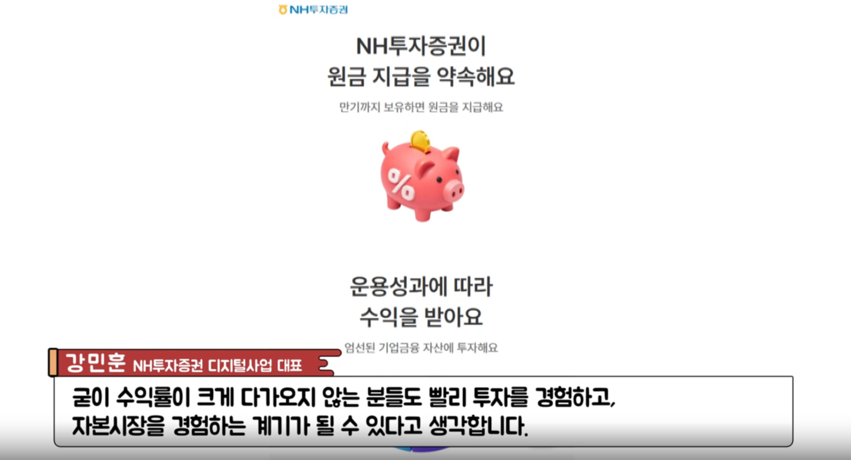 NH투자증권이 IMA 사업자 자격을 얻기 위해 지난해부터 많은 노력을 해왔습니다. 유상증자도 하고, 상품에 대한 연구, 플랫폼에 대한 연구도 시간을 들였습니다. 저희는 1호 상품부터 엄청난 수익을 내겠다는 목표를 갖고 있지 않습니다. 핵심은 투자 저변 확대에 있는데요.