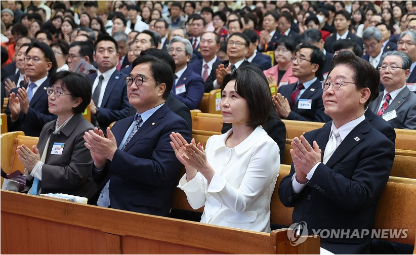 5일 부활절을 맞이해 이재명 대통령이 부인 김혜경 여사와 함께 서울 여의도순복음교회에서 열린 연합예배에 참석했다.