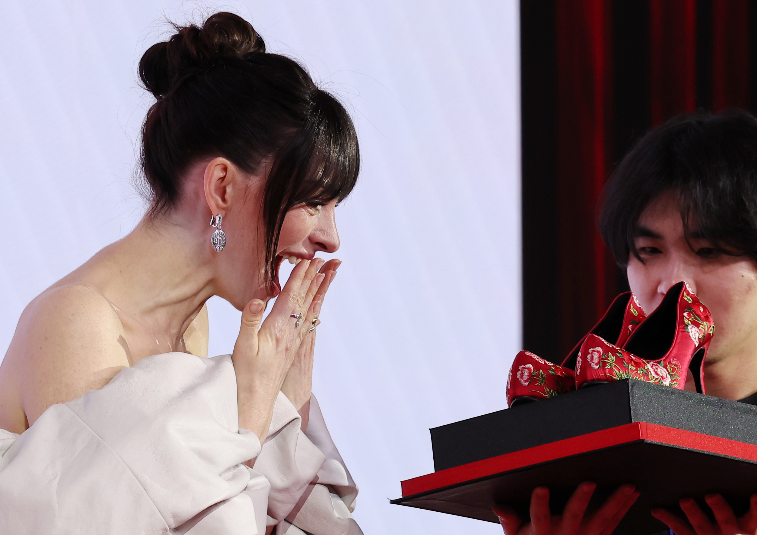 특히 두 사람은 제작진으로부터 영화의 상징인 빨간 '하이힐'에 한국 전통 문양을 더한 '꽃신'을 선물받고 감탄을 금치 못했다.