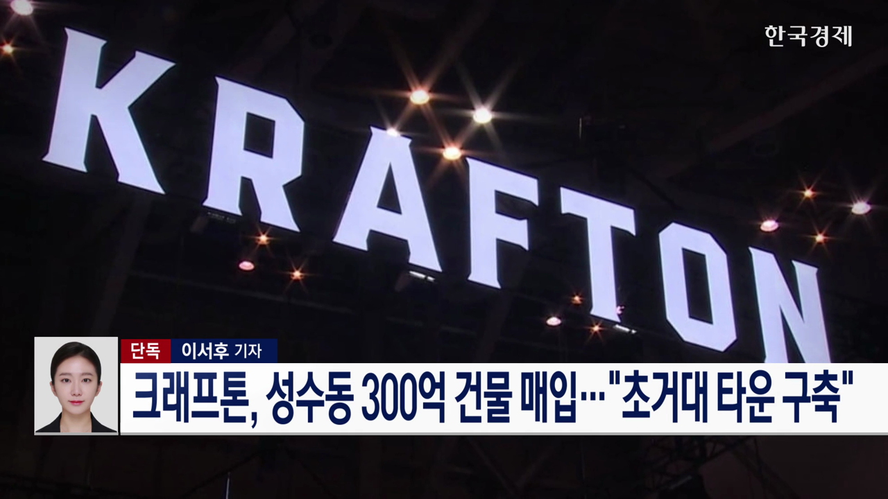 크래프톤이 성수동에 위치한 300억 원의 건물을 전액 현금으로 매입한 것으로 한국경제TV 취재결과 확인됐습니다.