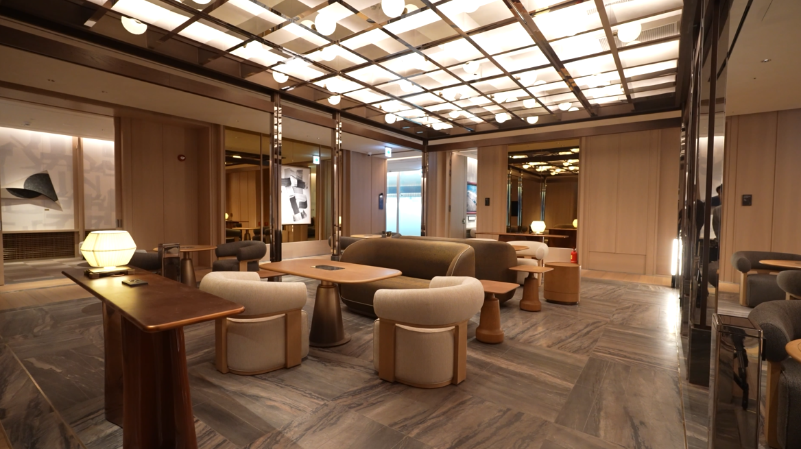 대한항공 일등석 라운지는 개방된 홀과 11개의 별실 등 921제곱미터(㎡) 규모에 67석을 갖췄다. 라운지중앙에 위치한 홀에는 목재 기둥과 대들보, 모시 등 한국 전통 미학에서 영감을 얻은 요소가 반영됐다. 고객들은 라운지 입장 후 독립된 별실로 안내되며, 아늑한 공간에서 휴식을 취할 수 있다. 라운지 내에는 샤워실(Shower Room), 웰니스(Wellness) 등 편안하고 쾌적한 항공 여행을 도와주는 부대시설도 마련했다.