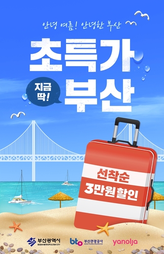 ▲ 여가 플랫폼 기업 야놀자는 신종 코로나바이러스 감염증(코로나19)으로 어려움을 겪는 부산지역 관광산업의 활성화를 위한 '초특가 부산' 기획전을 진행한다고 9일 밝혔다. 야놀자와 데일리호텔은 부산 숙소 전용 카테고리를 신설하고, 부산 인기 숙소 200여 개를 최대 80% 할인된 가격으로 제공한다. 또 이달 말까지 부산 숙박 상품 전용 할인권 등 쿠폰을 선착순 지급한다. (서울=연합뉴스)