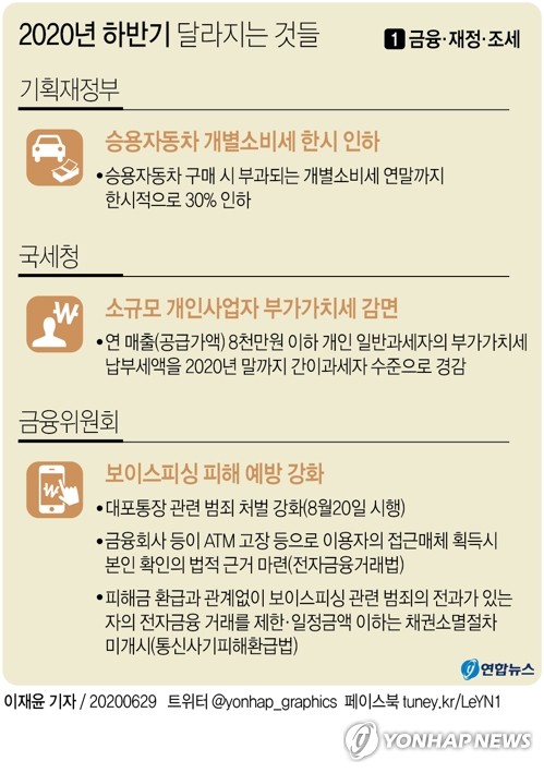 ▲ 보이스피싱 피해 예방 강화 = 8월 20일부터 보이스피싱 등 범죄에 이용되는 대포통장 양수도·대여 등에 대한 처벌이 최대 징역 3년, 벌금 2천만원에서 최대 징역 5년, 벌금 3천만원으로 강화된다. 대포통장 조직에 범죄단체조직죄를 적용해 가중처벌하고 범죄수익을 환수할 수도 있게 된다. 11월 20일부터는 보이스피싱 관련 전과자의 전자금융거래를 제한한다. 금융회사는 소액 피해액에 대해 채권소멸절차를 개시하지 않게 한다.