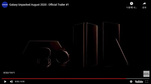 (서울=연합뉴스) 조성흠 기자 = 삼성전자[005930]가 다음 달 5일 온라인으로 개최하는 '삼성 갤럭시 언팩 2020' 행사를 앞두고 28일 공식 예고영상(트레일러)을 공개했다.