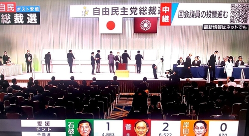 (도쿄=연합뉴스) 박세진 특파원 = 아베 신조(安倍晋三) 총리의 후임을 선출하는 자민당 총재 선거에서 스가 요시히데(菅義偉·71) 후보(관방장관)가 압도적인 지지를 얻어 당선했다.