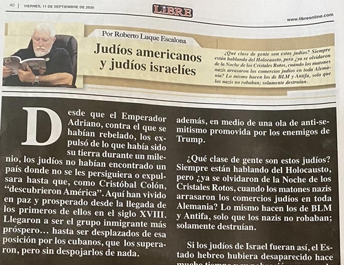 논란에 휩싸인 칼럼은 마이애미 헤럴드가 스페인어판으로 유료로 제공하는 주간 '리브레'에 '미국의 유대인과 이스라엘의 유대인'이란 제목으로 게재됐다.