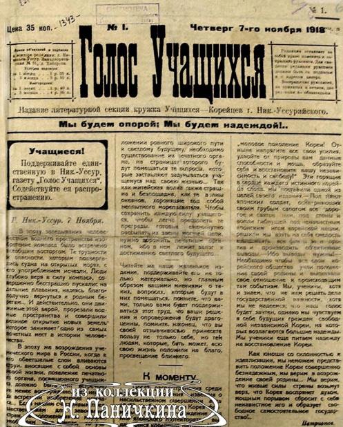 기자는 최근 지방 향토사학자인 파니치킨 니콜라이를 통해 러시아 연방 극동중앙국립문서보관소에 보관된 102년 전 한인 학생들이 발행했던 신문의 내용 일부를 최근 들여다볼 수 있었다.