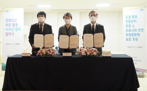 (서울=연합뉴스) 한혜원 기자 = 신협중앙회는 17일 서울 경복궁에서 문화재청, 전주시와 '문화유산 보전 및 활용을 위한 업무협약'을 체결했다고 밝혔다.