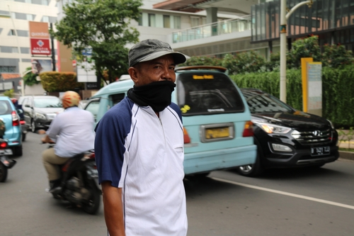 2일(현지시간) 오후 남부 자카르타 끄망빌리지 입구를 연결하는 교차로에 선 악산(60)씨는 퇴근 시간대에 몰린 차량을 빠른 손짓으로 멈추고, 세우고, 규칙적으로 다시 움직였다.