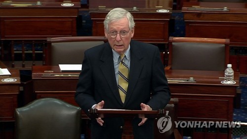 (서울=연합뉴스) 김용래 기자 = 미국 공화당의 미치 매코널 상원 원내대표가 상원의 도널드 트럼프 전 대통령 탄핵한 부결 직후 지난달 연방의회 난동사태에 트럼프의 책임이 있다면서 거친 표현을 써가며 비난했다.