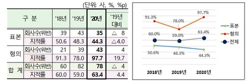 이 중 무작위 추출 등을 통해 진행되는 표본 심사·감리 지적률은 44.3%로 전년(48.3%)보다 4.0%포인트 하락했다.