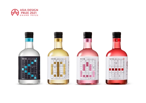 ▲ 이마트24는 '아시아 디자인 프라이즈(Asia Design Prize) 2021'에서 전통주 '수을수을'로 대상을 받았다고 15일 밝혔다. '수을'은 '술'의 옛말로, 이마트24 브랜드실은 세종대왕이 창안한 한국 최초의 유량악보(음의 높이와 길이를 나타낼 수 있는 악보)인 '정간보'를 모티브로 삼아 전통주 라벨을 현대적으로 재해석해 출품했다. (서울=연합뉴스)