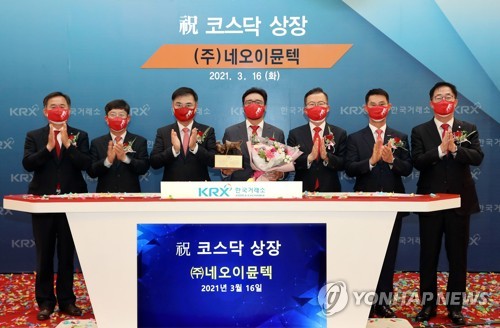 네오이뮨텍은 이날 시초가보다 4.33% 하락한 1만4천350원에 거래를 마쳤다. 공모가(7천500원) 보다는 91% 높은 수준이다.