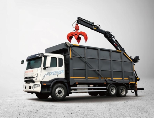프리마 중형 너클 크레인은 집게차 또는 굴절식 크레인으로 불리며 일반 폐기물을 처리하는 특장차로, 스웨덴 히아브사의 고성능 너클 크레인을 탑재해 작업 효율성을 높였다고 타타대우상용차는 전했다.