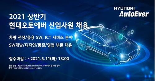 (서울=연합뉴스) 정윤주 기자 = 현대오토에버[307950]는 상반기 대졸 신입사원을 공개 채용한다고 4일 밝혔다.